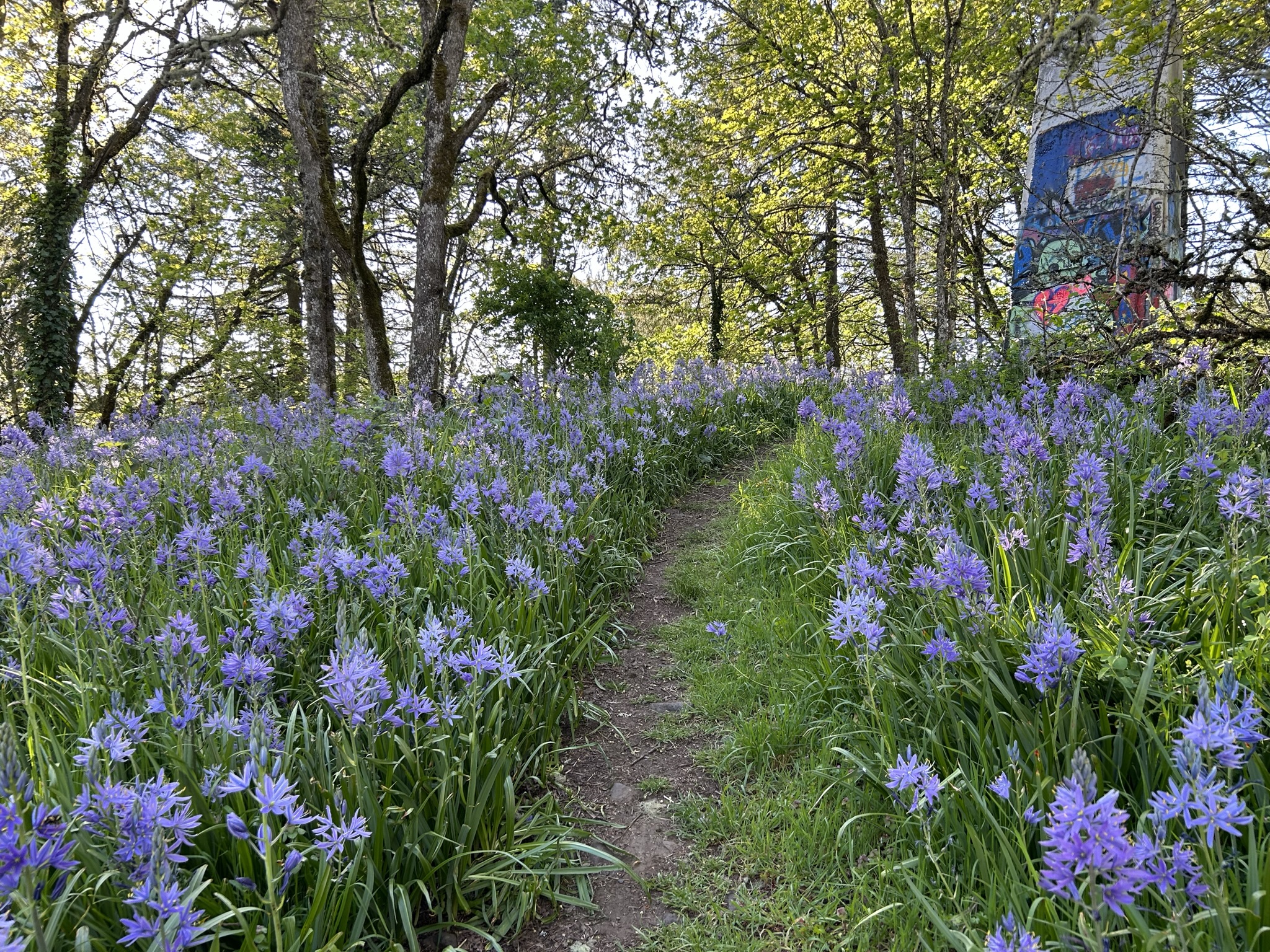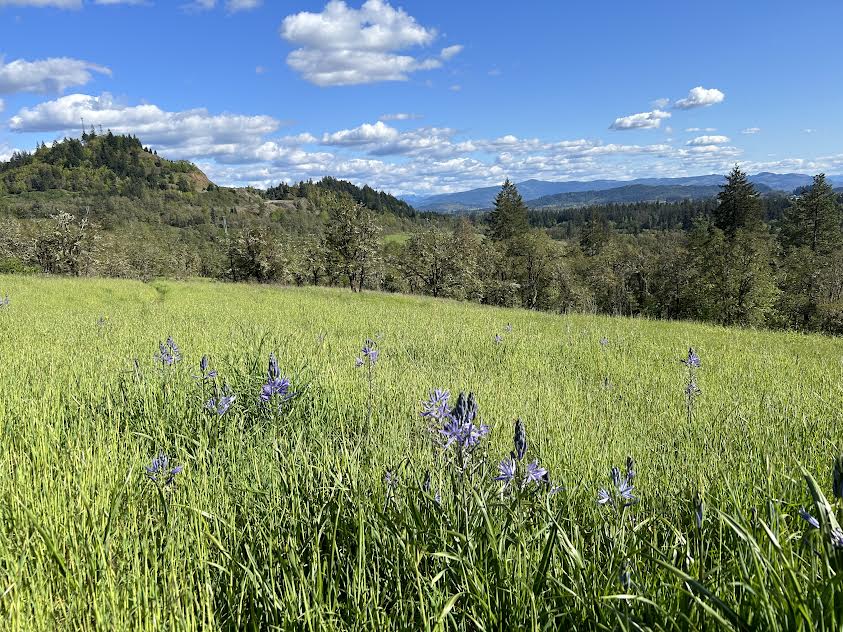 Here in the Eugene/Springfield area, the camas lilies are in full bloom right now, sometimes in full fields. The best place to see them in Eugene is Wayne Morse Family Farm (aka Morse Ranch) in South Eugene. The trail through the lower (north) end of the park goes through a whole patch of them. The best place to see them in Springfield is Willamette Heights Park, up the little trail from the grassy area to the summit. Here are a couple photos of them from past years. (My photos from the same spot in Willamette Heights park last week were a bit too high of contrast with the sun and shade, so the only pic from this year is the one in the sun up above). Enjoy!